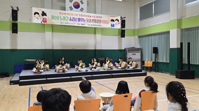 풍기북부초등학교(교장 오영철)는 2월 4일(수) 오후 1시부터 교내 강당 혜윰관에서 전교생과 학부모, 교직원 등 70여 명이 참석한 가운데 ‘전통문화한마당, 학교특색프로그램 예술수업 발표회’를 개최했다.