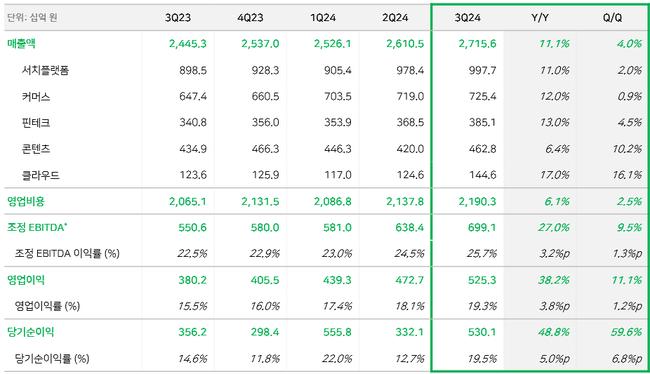 [표] 네이버㈜ 2024년 3분기 실적
